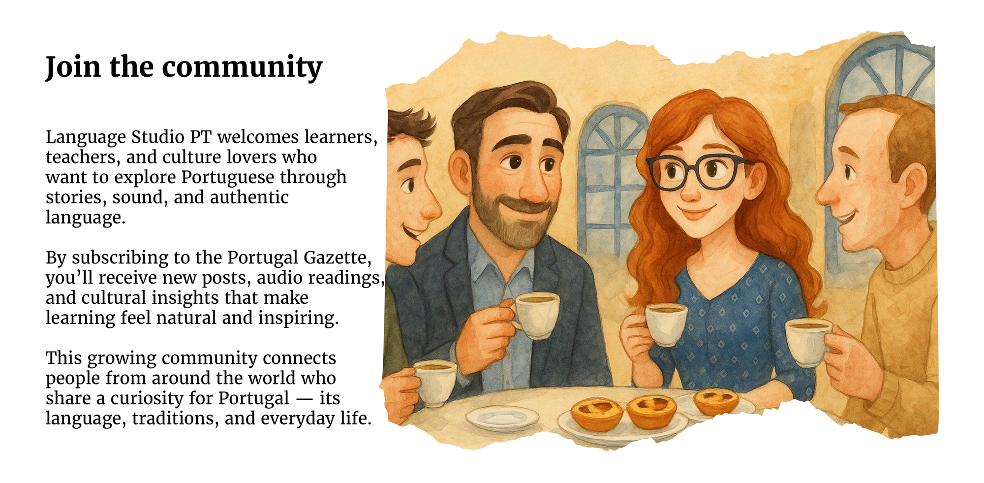 At Language Studio PT, you discover Portugal through words in our posts and publications, through sounds in our upcoming podcast, and through emotions that connect language and culture.